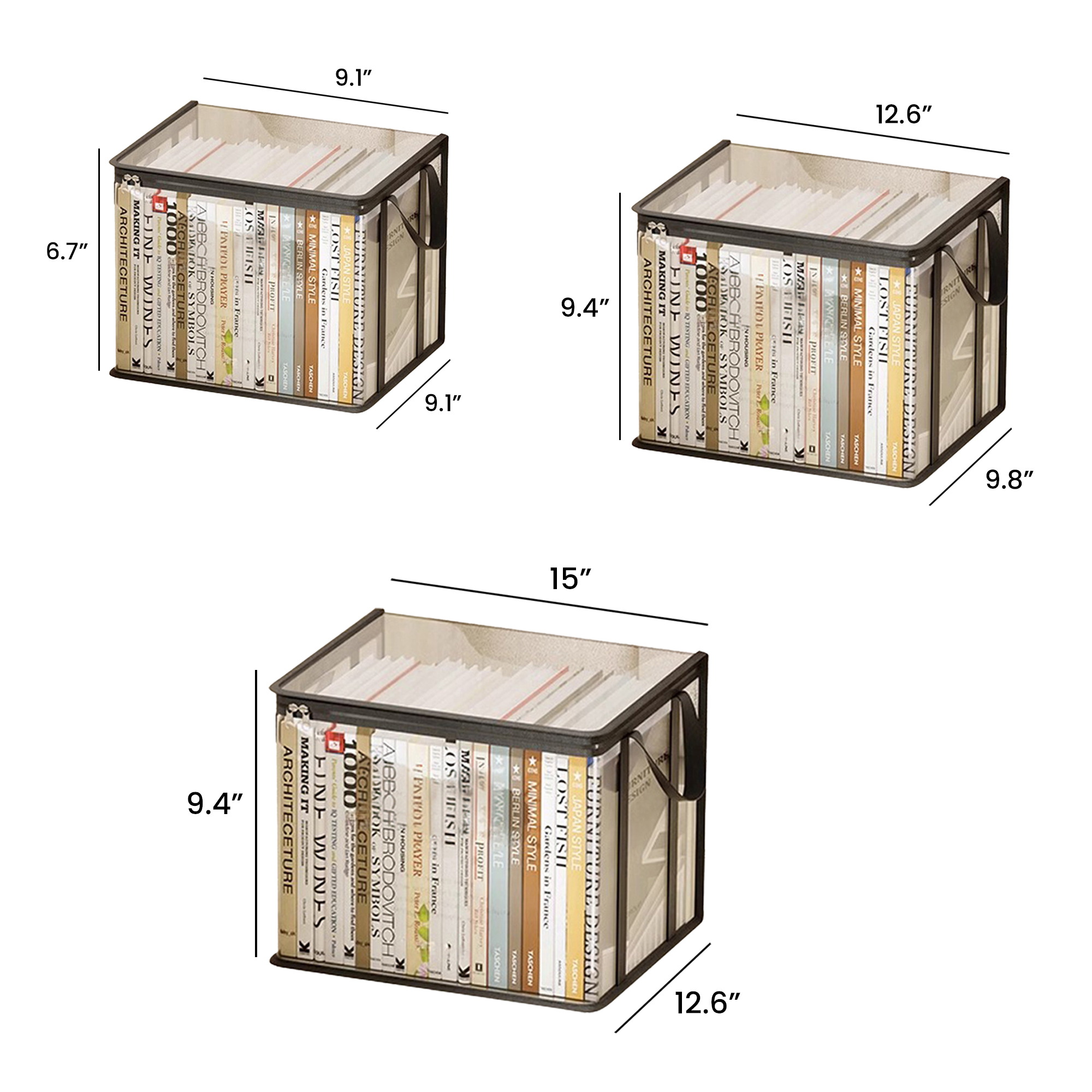 (6.7" x 9.1" x 9.1"), (9.4" x 12.6" x 9.8"), (9.4" x 15" x 12.6") |