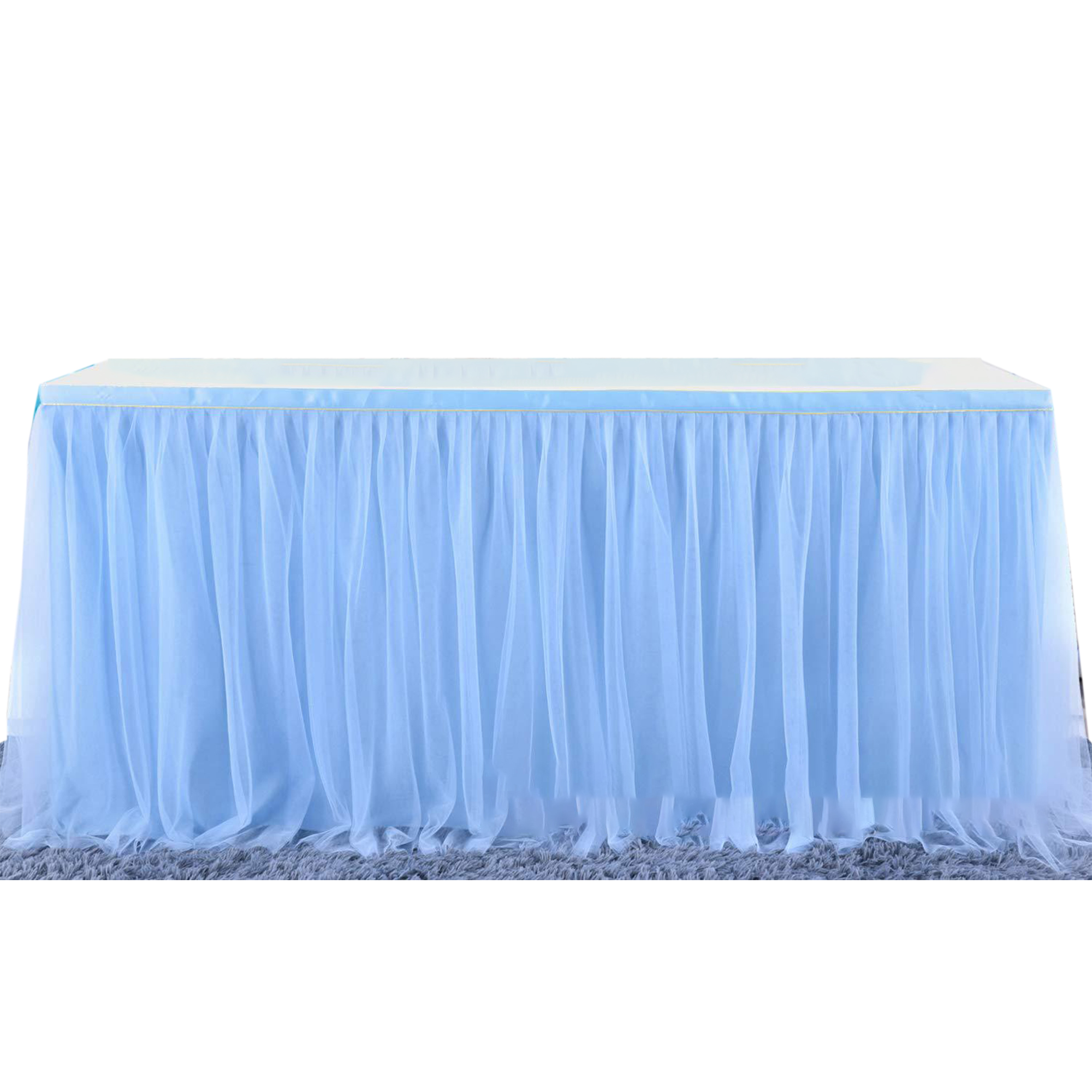 Introducing the Elegant Fluffy Yarn Table Skirt for Events, crafted from luxurious mesh and ice silk materials. Available in various sizes: 70.9" x 29.5", 110.2" x 29.5", 165.4" x 29.5". This exquisite table skirt elevates event decor with its soft, fluffy texture and elegant drape. Perfect for weddings, birthday parties, and corporate events. Its versatile design suits dessert tables, cake tables, and display areas. Ideal for event planners, decorators, and promotional gift suppliers, this table skirt adds sophistication and style to any setting.