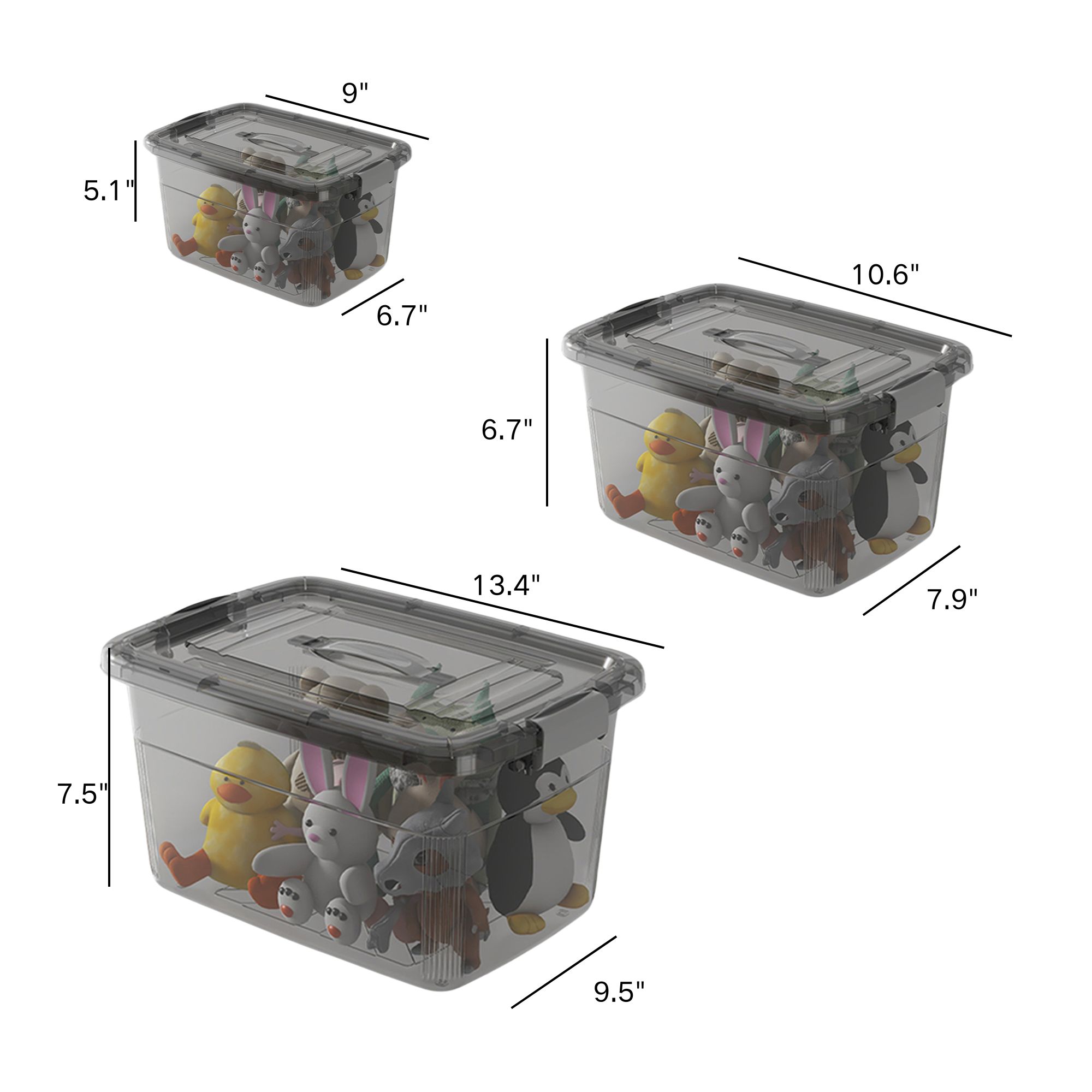 5.1"x9"x6.7",6.7"x10.6"x7.9",7.5"x13.4"x9.5" |